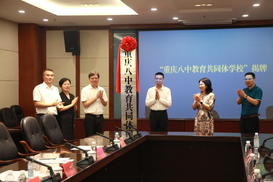 7月23日,重庆八中教育共同体学校揭牌暨合作方案签约仪式在北碚区行政中心举行,北碚区教育委员会与重庆市第八中学校签订《教共体建设合作方案》,重庆市第八中学校与重庆市朝阳中学签订《合作共建》协议。北碚区政府副区长向红,渝北区委教育工委书记、区教委主任刘雪梅,重庆八中党委书记、教育集团总校长周迎春,重庆八中教育集团校长助理、渝北校区副校长周明,重庆市朝阳中学党委书记王小涛等出席仪式。