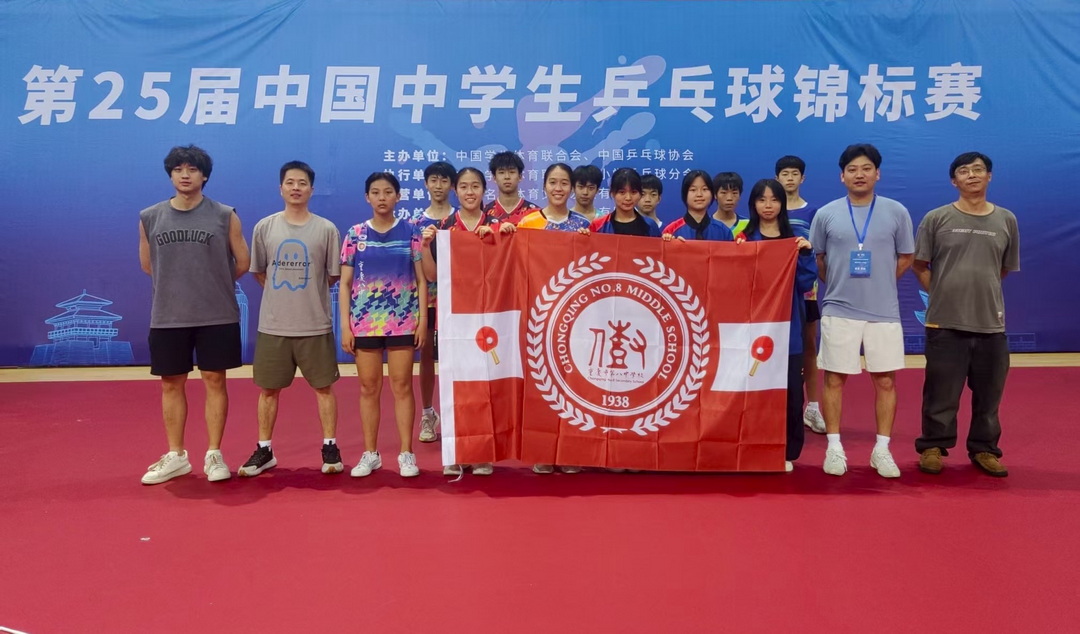 2025年8月10日-8月17日,第25届全国中学生乒乓球锦标赛在山东枣庄举行。全国中学生乒乓球锦标赛是由教育部学生体育协会主办的全国中学生体育赛事,是国内中学生体育竞赛中级别最高、水平最高的乒乓球比赛。本届比赛吸引了来自全国105支参赛队伍705名运动员,各路好手在8天的比赛中角逐单打、双打及团体项目的桂冠。在比赛过程中,重庆八中高水平乒乓球队表现抢眼,女团勇夺第四名,混合双打组合斩获第五名,在首次参赛的征程中展现出顽强的拼搏精神,为重庆市参加本届比赛所有学校中最好成绩。