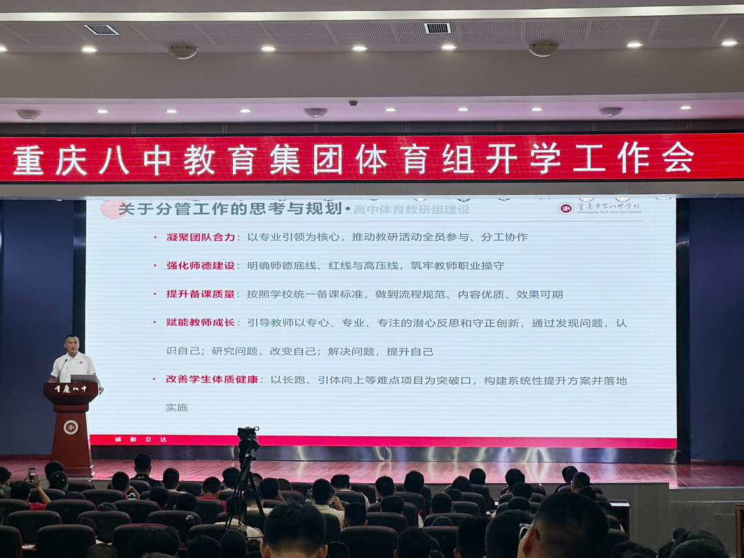 此次开学工作会的召开,不仅明确了重庆八中教育集团新学期体育工作的目标与路径,更凝聚了全体体育教师的共识与力量。展望未来,八中体育人将以“时不我待、只争朝夕”的奋斗姿态,在课程建设、特色发展、育人实践中持续发力,为培养“德智体美劳”全面发展的时代新人贡献体育力量。
