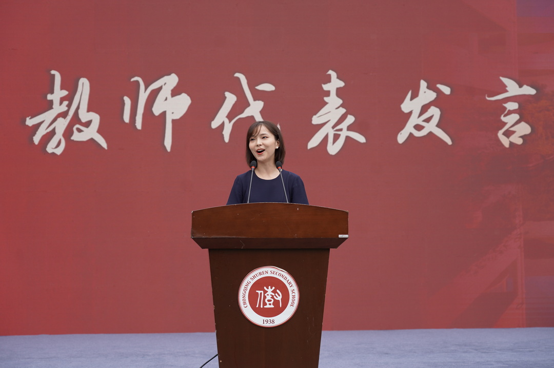 教师代表陈红吉老师向学生分享三点成长的建议:其一,拥抱爱与信任,从家庭、校园、社会的培育中汲取力量;其二,铭记诚勤立达,从自我叙事的确立中明晰方向;其三,肩负家国使命,自心系山河的胸怀中拓宽格局。陈红吉老师寄语全体同学勤学笃行、锤炼本领,努力成为新一代的担纲者。