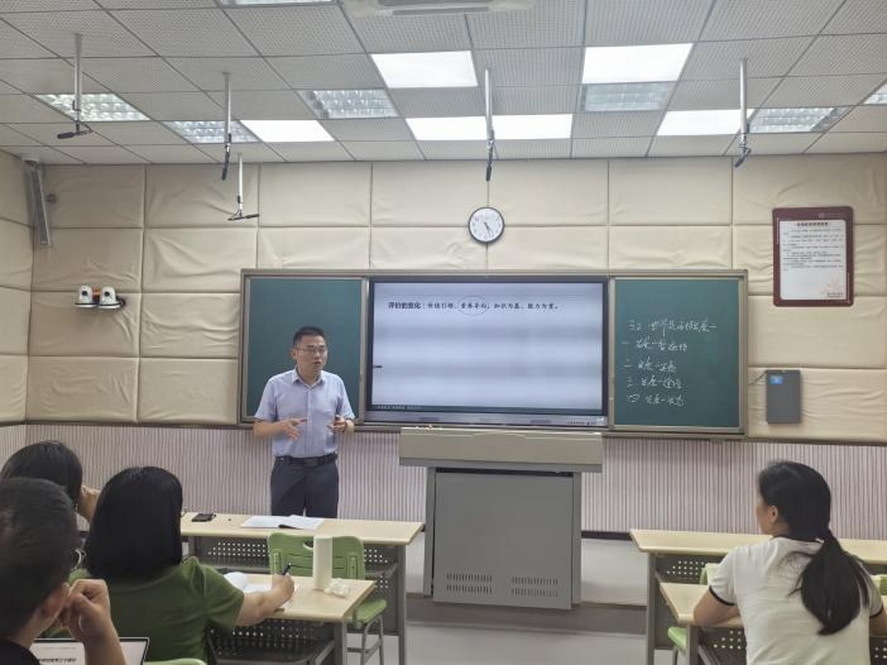 黎学令老师在评课中指出:“本节课最大的亮点是实现了三个转变”:从知识灌输到思维引导的转变,从教师主讲向学生主探的转变,从理论记忆向实践应用的转变。”他特别强调,一轮复习要注重“讲什么”胜过“怎么讲”,要通过构建知识体系,帮助学生形成政治学科的大观念、大思路。富新泉老师则从育人角度提出:“情境教学不仅要为知识服务,更要为育人服务。我们要通过政治课堂,培养学生用马克思主义立场观点方法认识问题、分析问题、解决问题的能力,同时要在教学中传达爱国主义教育、社会责任教育,让政治课既有深度又有温度。”