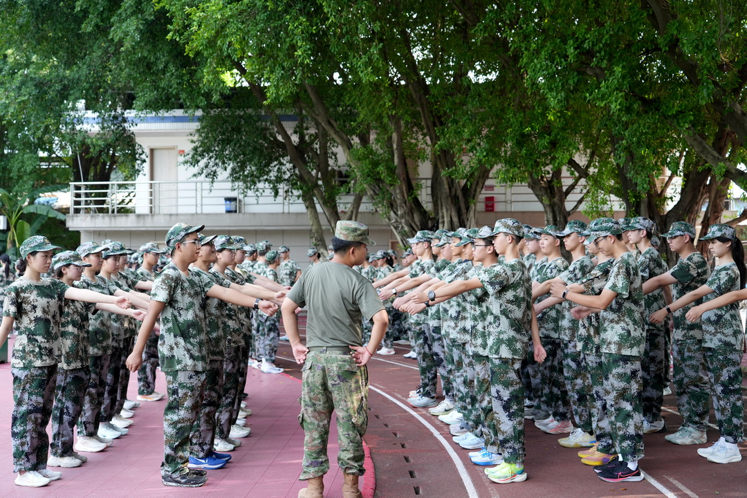 训练期间,同学们在教官的悉心指导下,展现了顽强拼搏的精神风貌。重复的动作中,蕴藏着“千磨万击还坚劲”的坚韧品格;浸湿的衣衫下,培育着“令行禁止守初心”的行动自觉;整齐的队列里,凝聚着“同舟共济向未来”的集体信念。这些看似琐碎的训练要求,实则将“担当”二字深深融入日常,让同学们深刻体会到:自律是面对一切挑战的底气,集体是扛起时代责任的根基,而军人般的坚韧品质,本就是当代青年应有的模样。