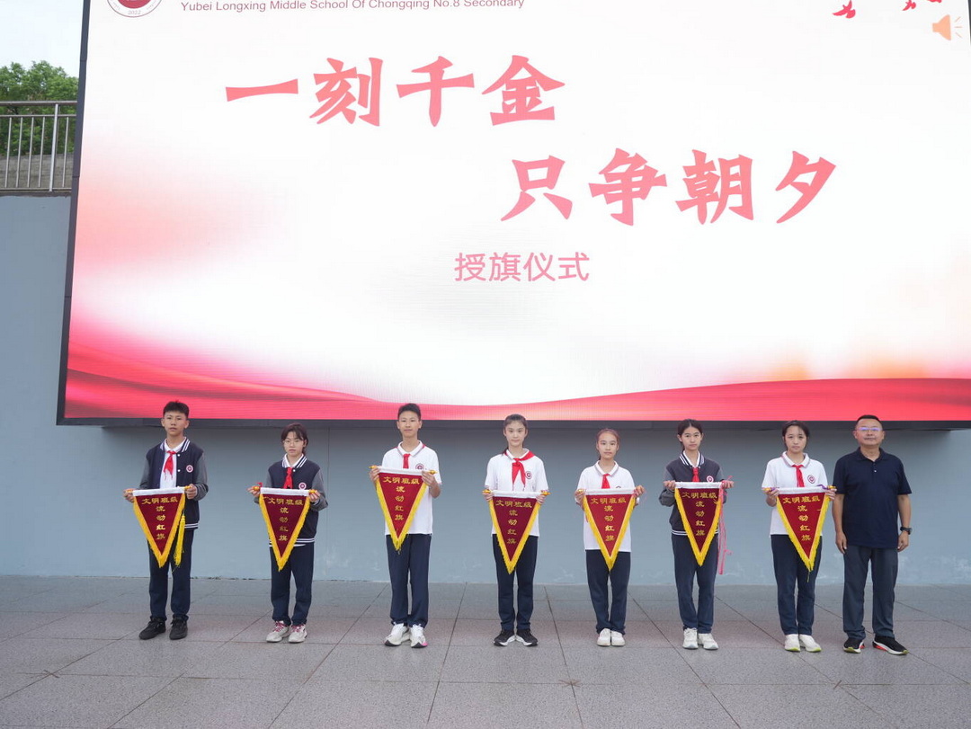 2025年9月22日,重庆市八中渝北龙兴中学校全体师生齐聚操场,举行了一场以“一刻千金,只争朝夕”为主题的升旗仪式,旨在引导师生们珍惜时间,合理规划,做时间的主人,开启充满活力与希望的新一周。