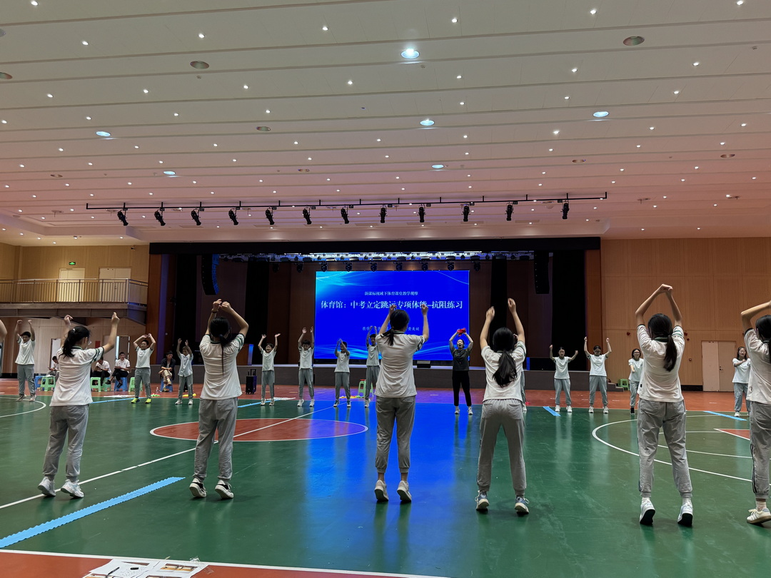 在这场教研活动中,我校的黄美姣老师为全区教师精心呈现了一堂《中考立定跳远专项体能—抗阻练习》课。黄美姣老师独具匠心,采用问题式教学法,启发学生主动发现问题、积极解决问题。她巧妙地组织学生进行分组学习,让同学们在思维的碰撞中,清晰地找到自身存在的问题,精准地解决了学生在立定跳远中面临的摆臂顶髋、腾空展腹、落地伸腿等技术难题。一堂课下来,学生们不仅收获了知识与技能,更获得了一个交流、合作、探索、提高的平台。在这里,他们可以尽情地挥洒汗水,释放青春的活力,在运动中不断成长和进步。