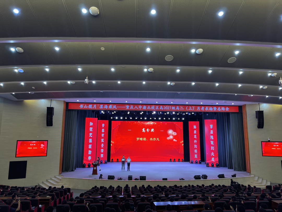 为系统总结新学期首次月考,表彰先进,树立典范,营造积极向上的学习氛围,2025年10月12日晚,重庆八中渝北校区高2027级于学校大礼堂隆重举行了第一次月考总结暨表彰大会。年级全体师生共同参与,现场气氛热烈,秩序井然。